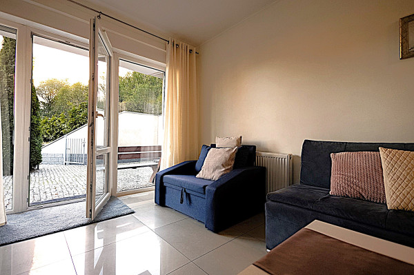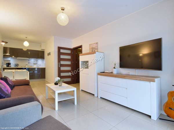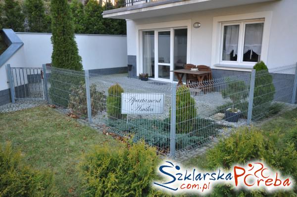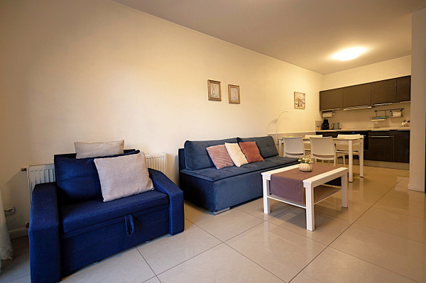 Apartament Amika znajduje się na parterze, zabezpieczony zewnętrznymi roletami z wyjściem na taras. Apartament 5 osobowy składa się z pokoju dziennego z aneksem kuchennym, sypialni i łazienki. Miejsca do spania: w sypialni podwójne łóżko małżeńskie, w pokoju dziennym duża rozkładana sofa dwuosobowa i rozkładany fotel jednoosobowy. Apartament wyposażony jest w niezbędne urządzenia i sprzęt, między innymi w bezprzewodowy internet, suszarkę do włosów, żelazko, deskę do prasowania, rozkładaną suszarkę itp.